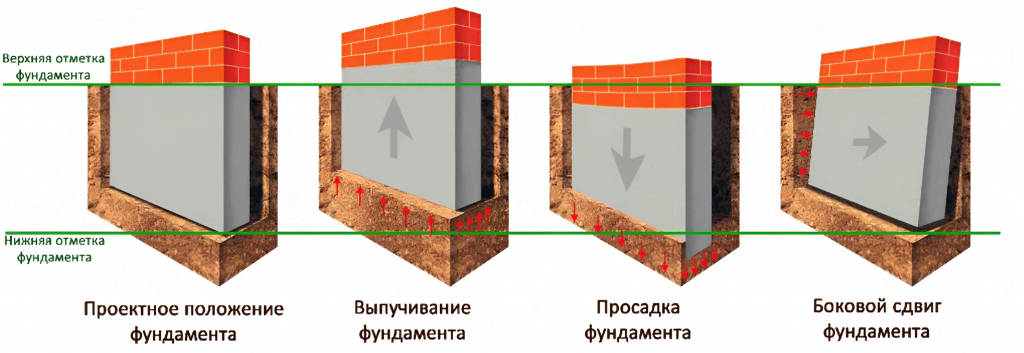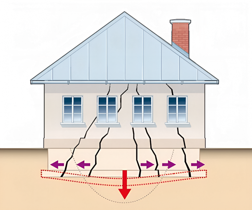 На степень осадки влияет неоднородный грунт, различное содержание воздуха и воды, а также образование примесей, деформации, глубины промерзания грунта, процессы химического процесса в почве. Если же осадка осуществляется равномерно с небольшим изменением структуры, то это уже просадка.