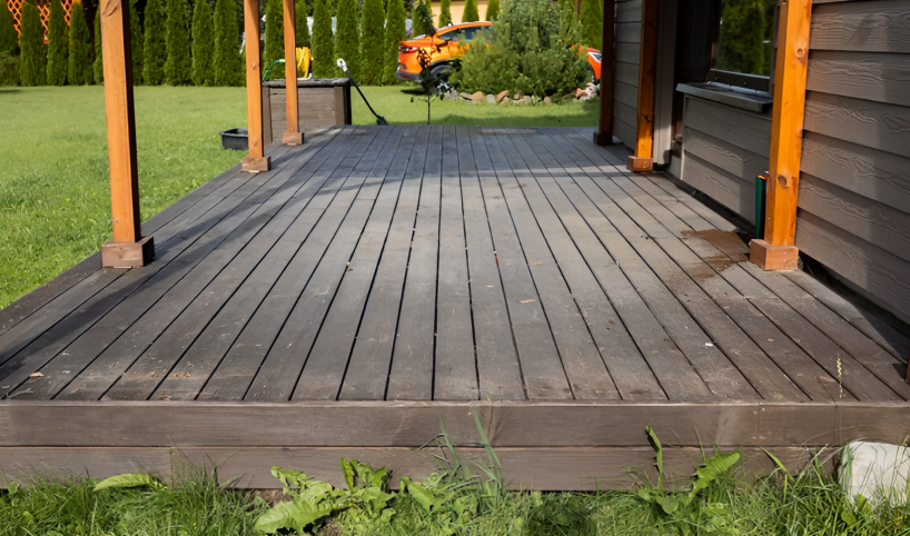 Для открытых террасных площадок используют как экзотические, так и обычные породы дерева.
