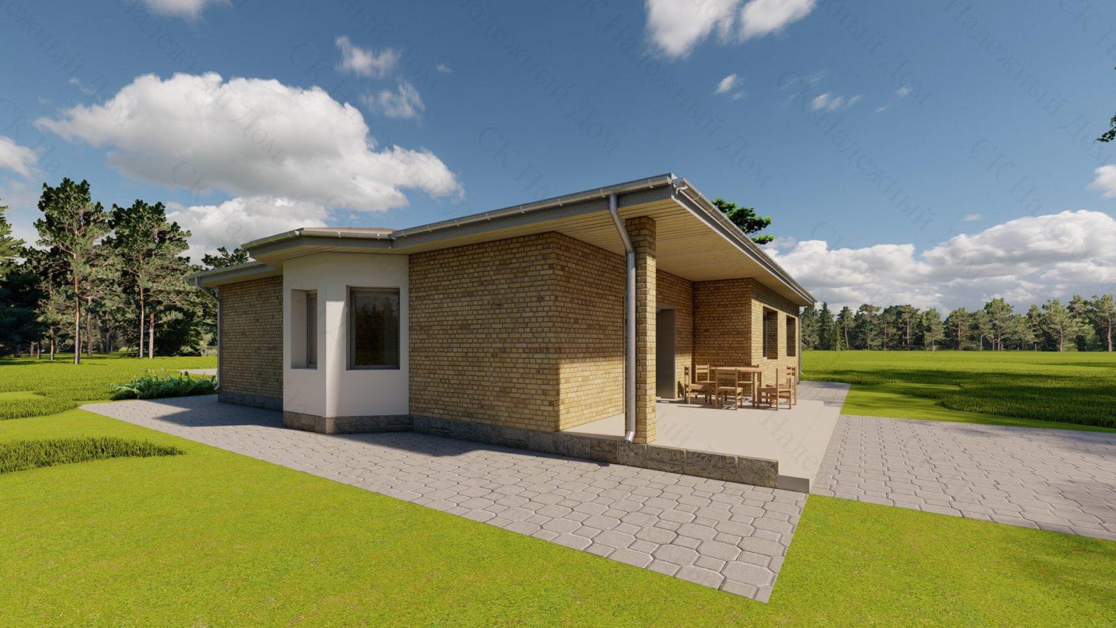 Проект дома Элиот — очень рациональный дом, сочетающий удобство планировок и достаточно низкую цену. Терраса значительно увеличивает полезную площадь дома. Большая терраса и холл, являющийся в данном проекте и шлюзом, уменьшающим потери тепла дома, составляют зону входа.