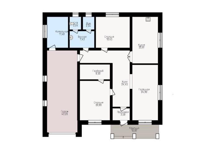 Проект дома ГБ 19-61 — очень рациональный дом, сочетающий удобство планировок и достаточно низкую цену. Терраса значительно увеличивает полезную площадь дома. Большая терраса и холл, являющийся в данном проекте и шлюзом, уменьшающим потери тепла дома, составляют зону входа.