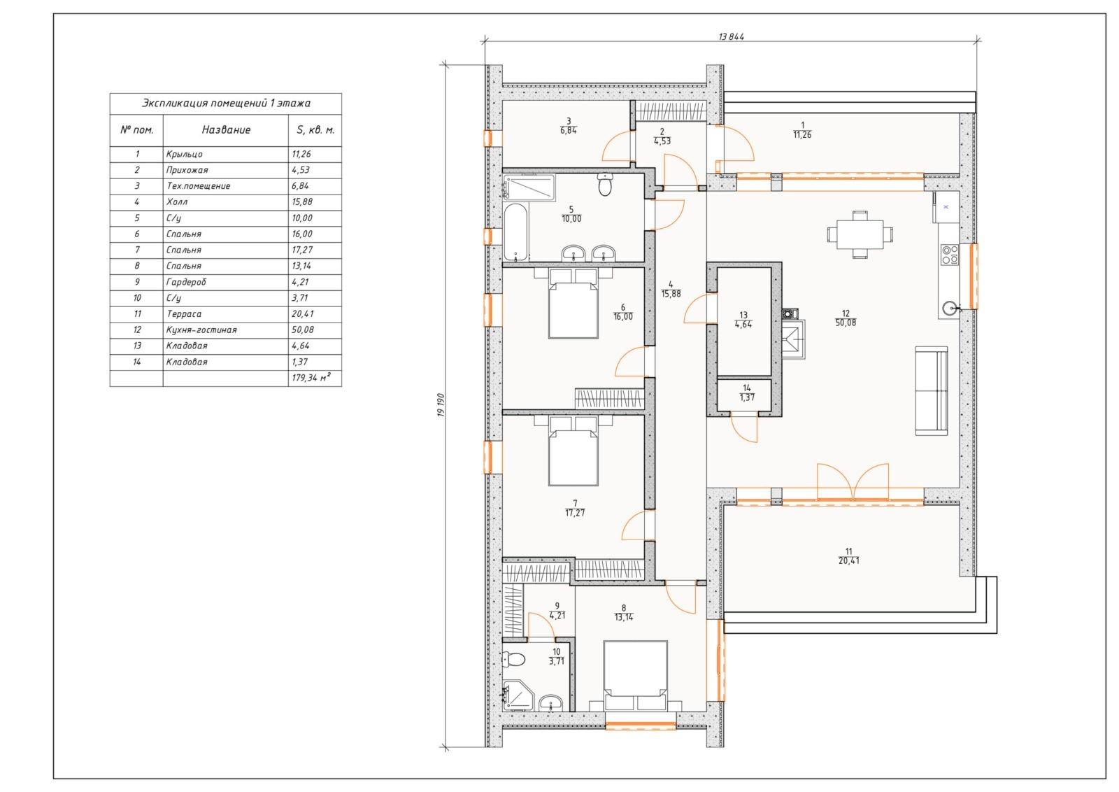 Проект дома Хане — очень рациональный дом, сочетающий удобство планировок и достаточно низкую цену.