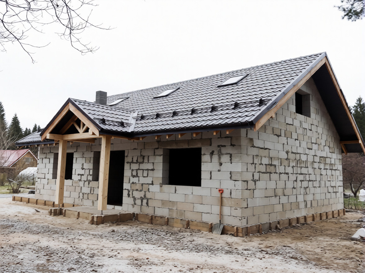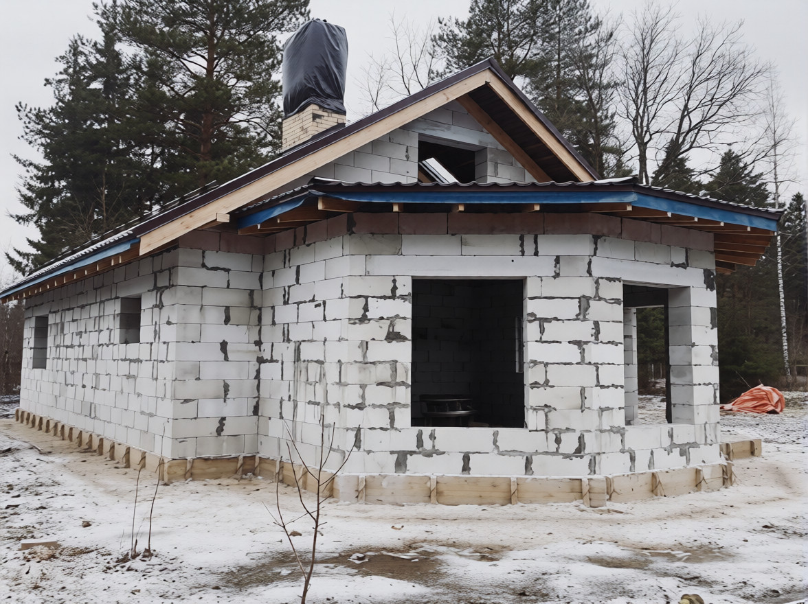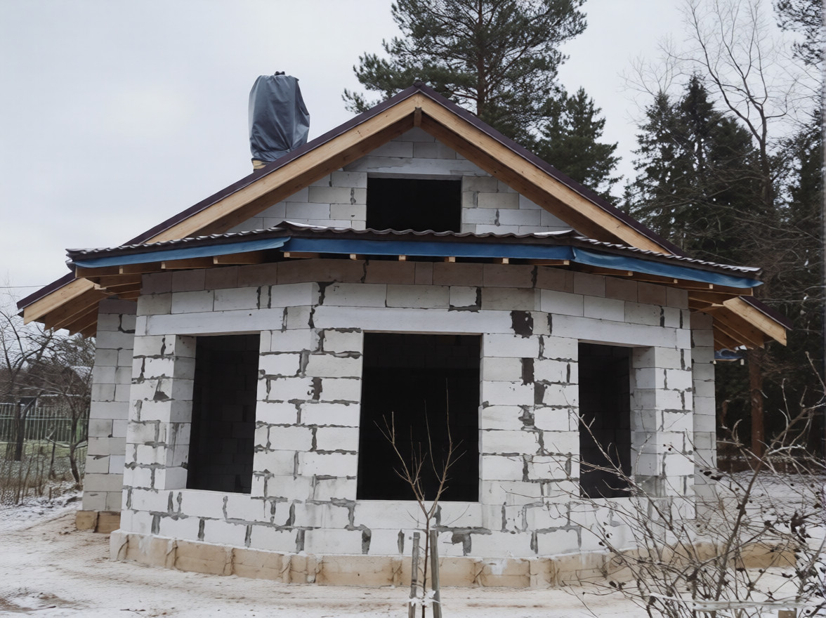 90 Срок строительства163 м² Общая площадь8.00 x 12.00 м РазмерыСтроительство коробки дома из газобетона в СНТ Сестроречье