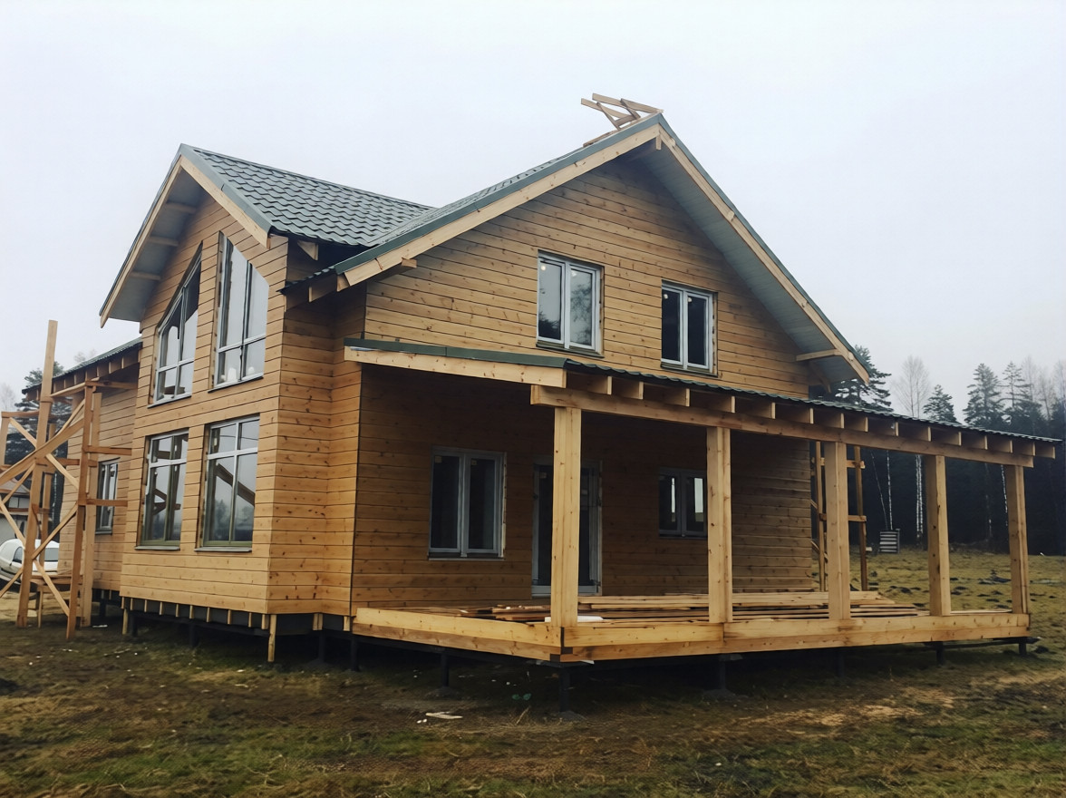 Строительство каркасного дома 8х13м.Лен.обл. Коробицыно СНТ Большая Медведица